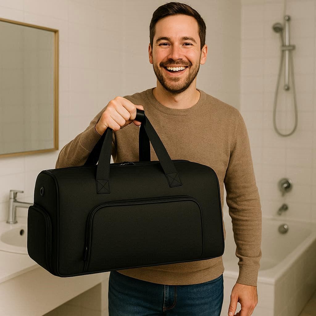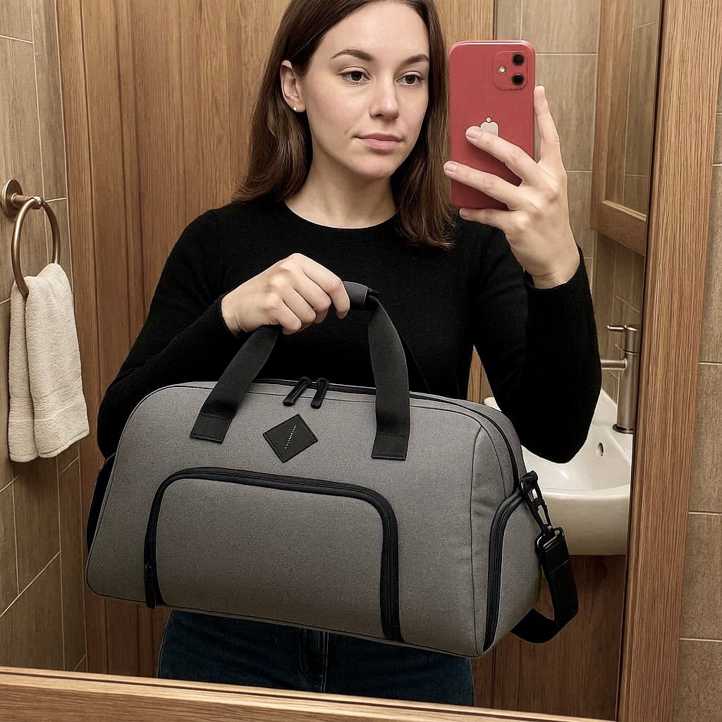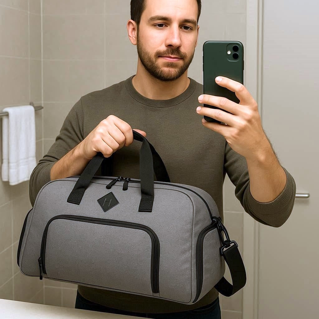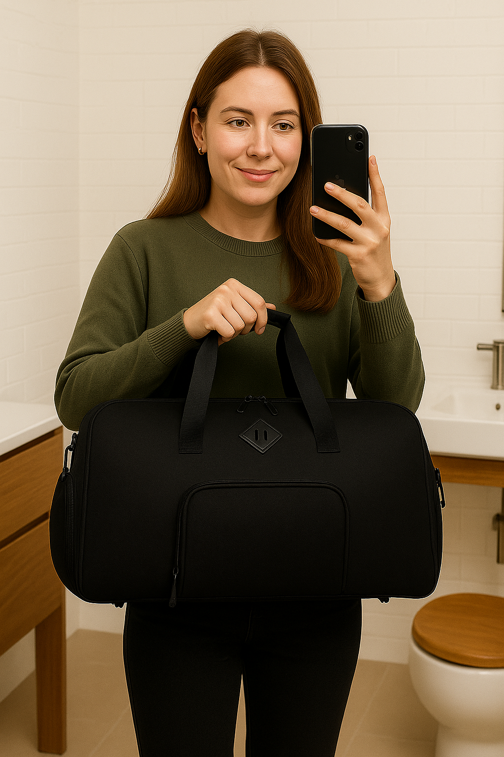 El Bolso Oslo incluye una bolsa de transporte 2 en 1 y un espacio ventilado para los zapatos.